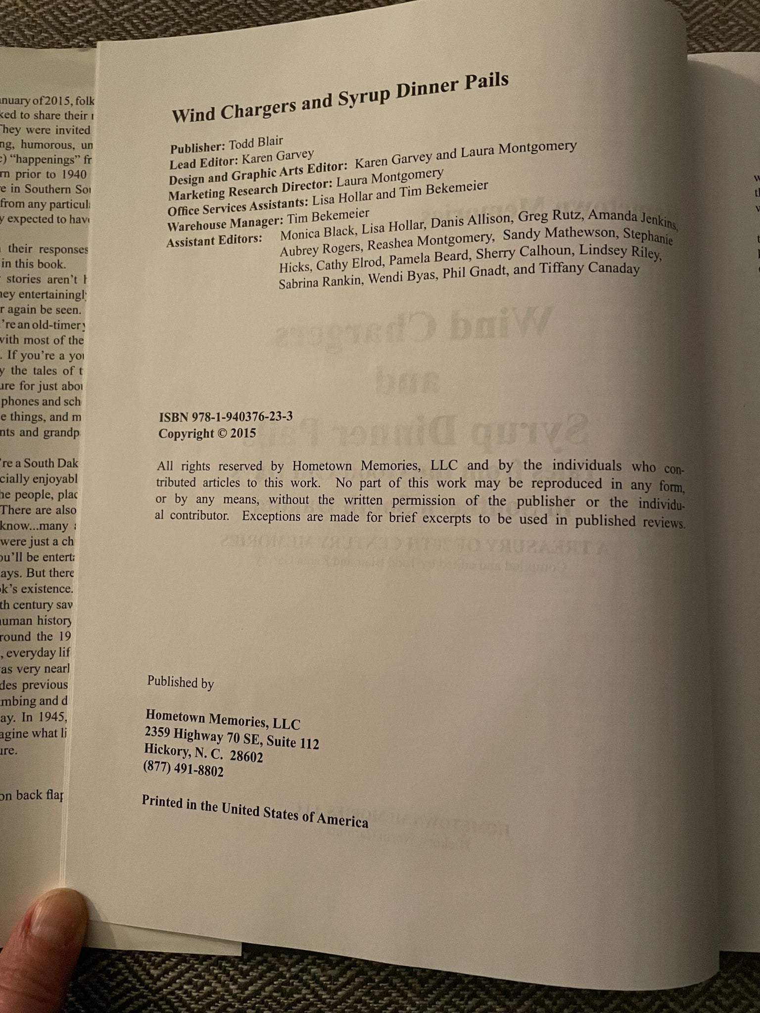 A Living History of Southern South Dakota Wind Chargers and Syrup Dinner Pails.  Compiled and edited by Todd Blair and Karen Garvey.  Published in 2015 by Hometown Memories, LLC.